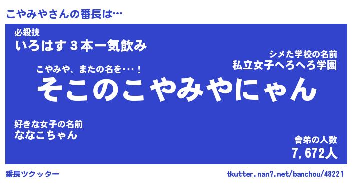 | 意味不明あだ名 | 『ペロリンこやみや』『永久保存こやみや』 |