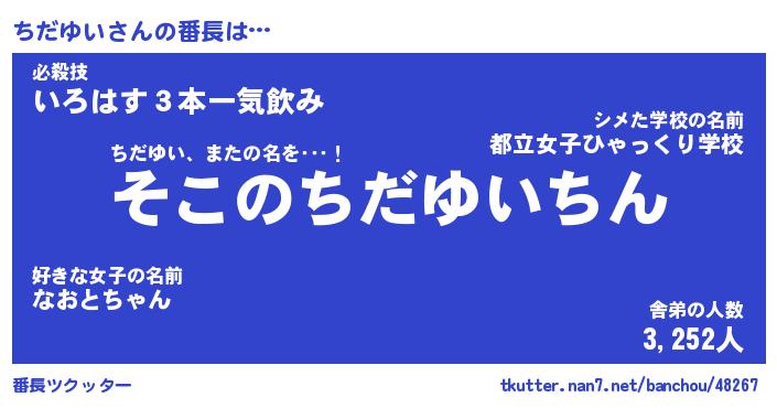 | 肩書あだ名 | 『ちだゆい店長』『ちだゆい大統領』 |