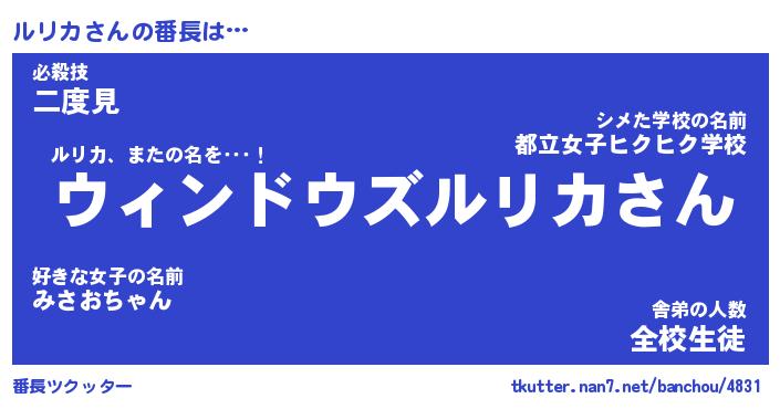 | 意味不明あだ名 | 『ペロリンルリカ』『ルリカフォーエバー』 |