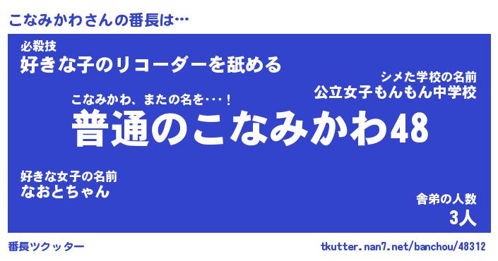 | 肩書あだ名 | 『こなみかわ御曹司』『こなみかわ塾長』 |