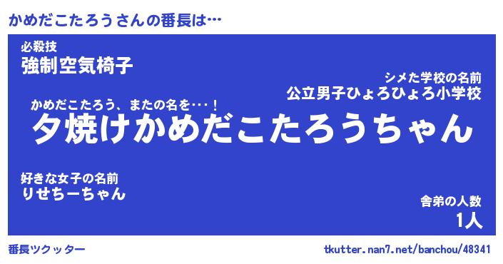| ヘコむあだ名 | 『かめにゅー』『牛乳』『かめお』 |