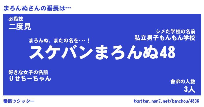 | 意味不明あだ名 | 『ペロリンまろんぬ』『永久保存まろんぬ』 |