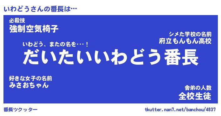 | ヒーロー風カッコイイあだ名 | 『スーパーイワドウ』『暗黒騎士イワ』 |