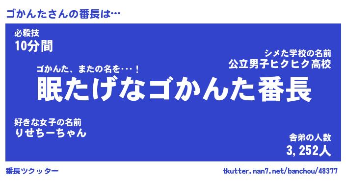 | 意味不明あだ名 | 『ペロリンゴかんた』『永久保存ゴかんた』 |