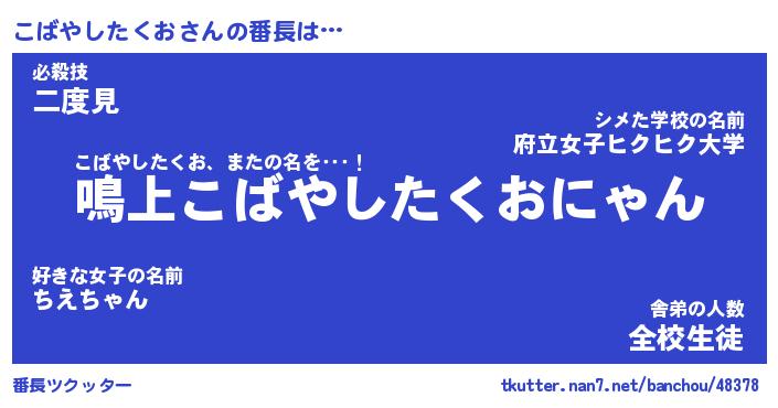 | 伝説のあだ名 | 『封印されしスナイパーこばやしたくお』 |