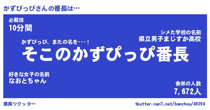 | ヒーロー風カッコイイあだ名 | 『スーパーカズピッピ』『炎刃騎士カズ』 |