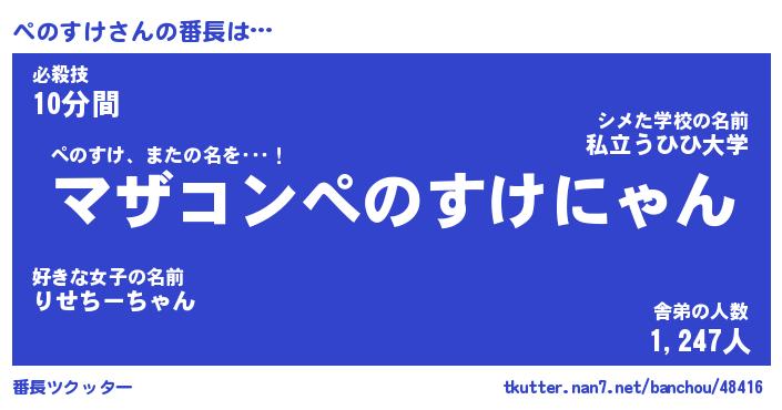 | 意味不明あだ名 | 『ペロリンぺのすけ』『永久保存ぺのすけ』 |