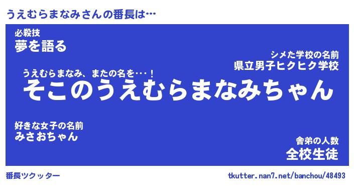 | 男性向けラノベタイトル風あだ名 | 『うえむらまなみの憂鬱』 |