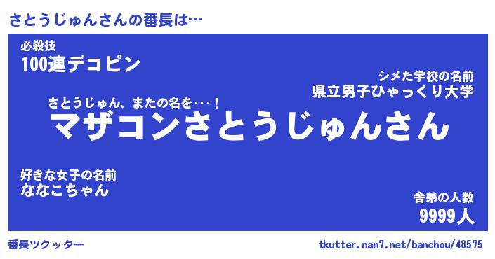 | 伝説のあだ名 | 『封印されし竜騎士さとうじゅん』 |