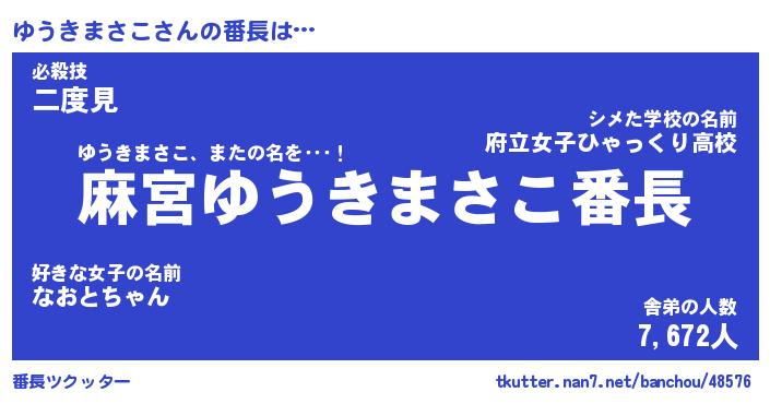 | ヒーロー風カッコイイあだ名 | 『スーパーユウキマサコ』『炎刃騎士ユウ』 |
