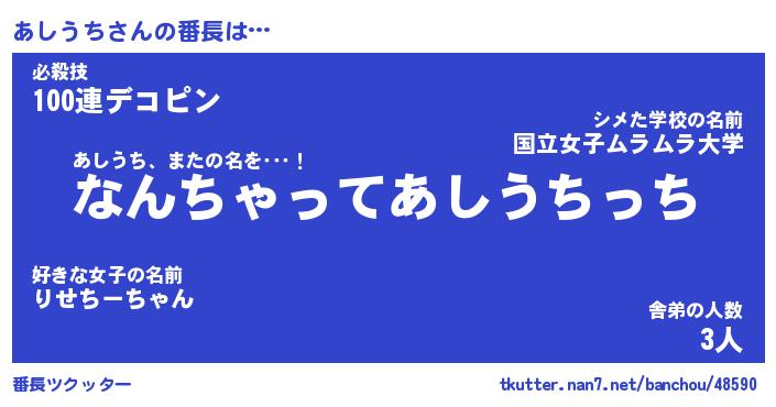 | 意味不明あだ名 | 『ペロリンあしうち』『永久保存あしうち』 |