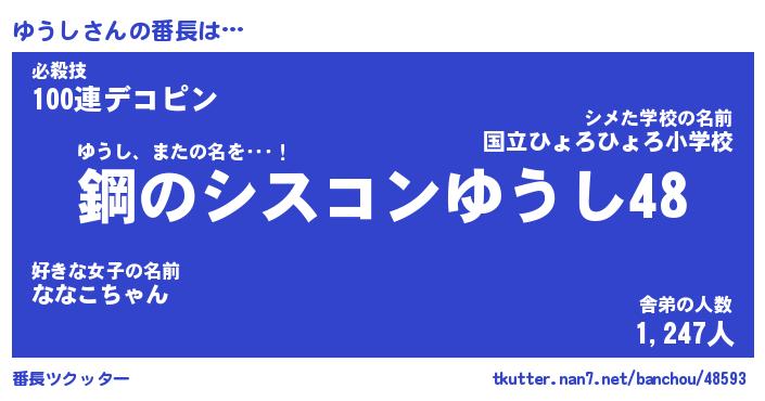 | ポケモン風あだ名 | 『ユウチュウ』『ユウシダネ』 |
