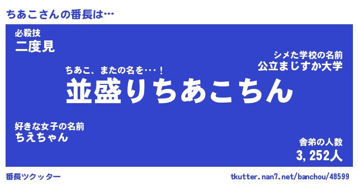 | 意味不明あだ名 | 『ペロリンちあこ』『ちあこフォーエバー』 |