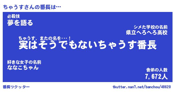 | 意味不明あだ名 | 『ペロリンちゃうす』『永久保存ちゃうす』 |