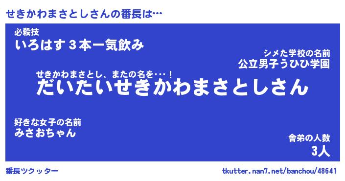 | 胡散臭い通販商品みたいなあだ名 | 『モテモテ間違いなし水晶球…その名も「せきかわまさとし」』 |
