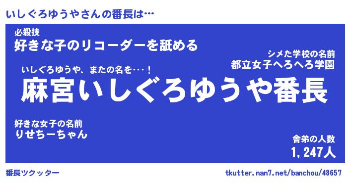 | 肩書あだ名 | 『いしぐろゆうや店長』 |