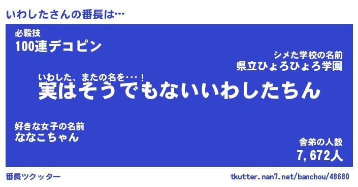 | 肩書あだ名 | 『いわした店長』『いわした総理大臣』 |