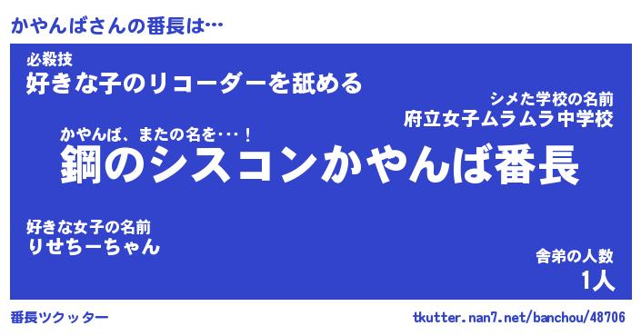 | ヘコむあだ名 | 『かやもー』『牛乳』『かやぷりん』 |