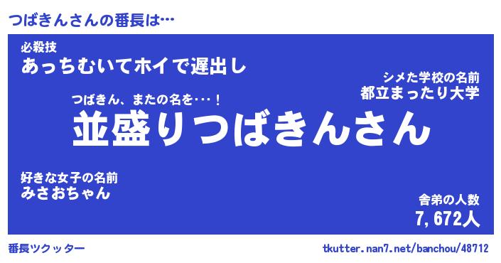 | 2回繰り返すあだ名 | 『つばつば』『つつばば』『ぬれぬれ』 |