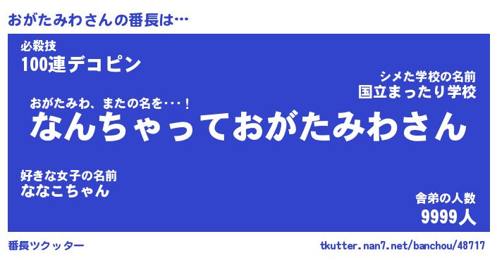 | 肩書あだ名 | 『おがたみわCEO』『おがたみわ総理大臣』 |