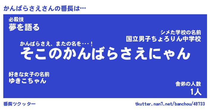 | ヒーロー風カッコイイあだ名 | 『スーパーカンバラサエ』『黄金騎士カン』 |