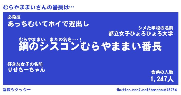 | 伝説のあだ名 | 『封印されし竜騎士むらやままい』 |