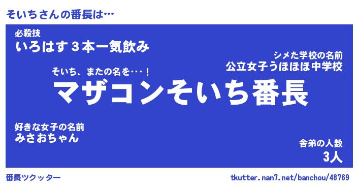 | ヒーロー風カッコイイあだ名 | 『スーパーソイチ』『ウルトラそいちマン』 |