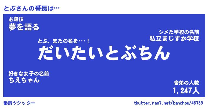 | ポケモン風あだ名 | 『トブチュウ』『トブダネ』『ヒトブ』 |