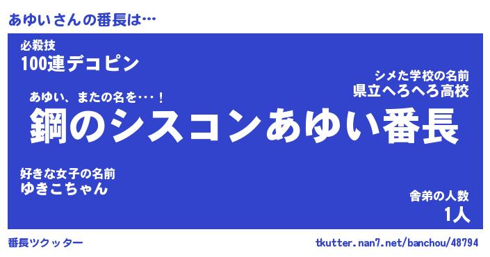 | ヘコむあだ名 | 『あゆにー』『豆乳』『あゆお』 |