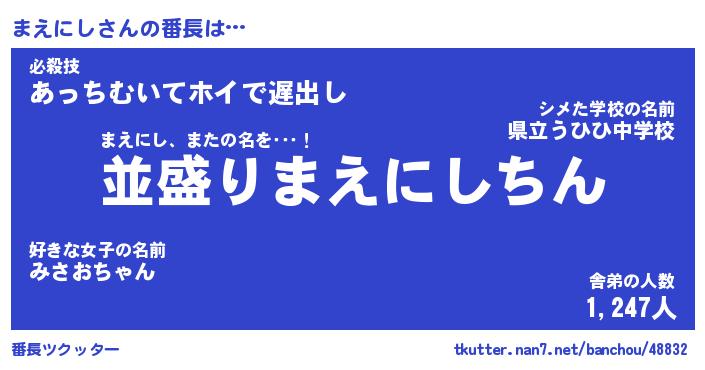 | 意味不明あだ名 | 『ペロリンまえにし』『永久保存まえにし』 |