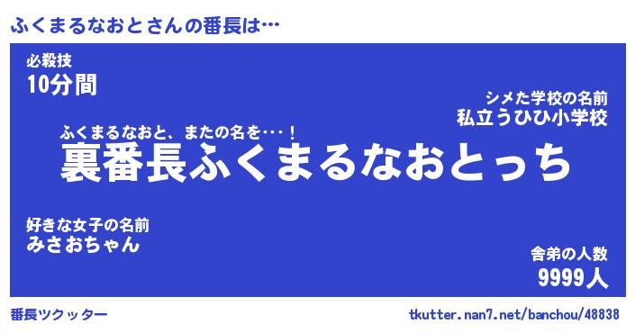 | 伝説のあだ名 | 『不死鳥のスナイパーふくまるなおと』 |