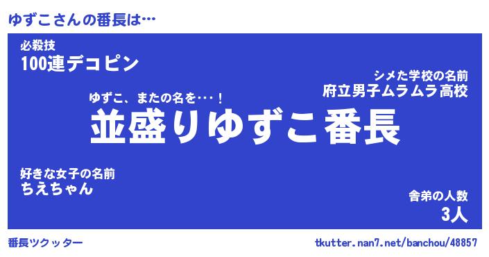 | ヘコむあだ名 | 『ゆずにー』『なまこ酢』『ゆずお』 |