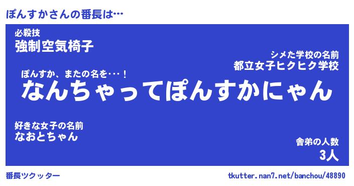 | 意味不明あだ名 | 『ペロリンぽんすか』『永久保存ぽんすか』 |