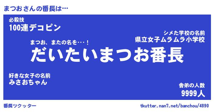 | ヒーロー風カッコイイあだ名 | 『スーパーマツオ』『ウルトラまつおマン』 |