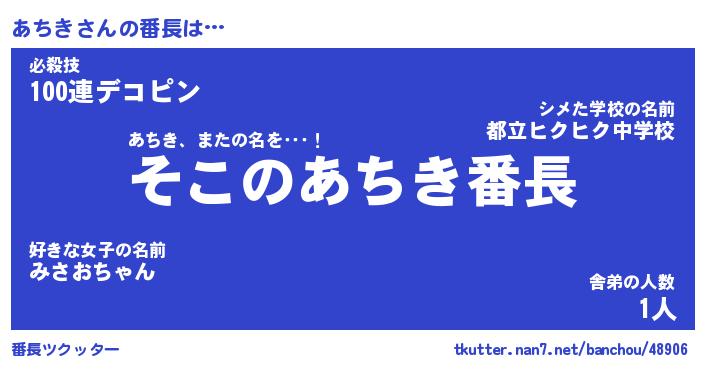 | ヒーロー風カッコイイあだ名 | 『スーパーアチキ』『ウルトラあちきマン』 |