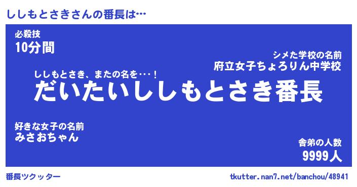 | ポケモン風あだ名 | 『シシチュウ』『シシモダネ』 |