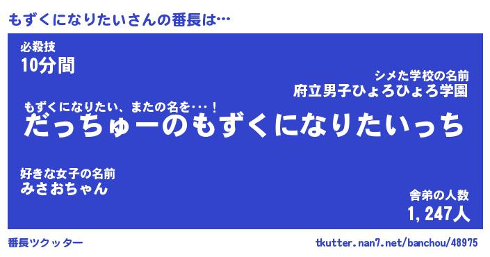 | ピコ太郎風あだ名 | 『モコ二郎』『ピモ史郎』『モズ史郎』 |