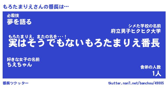 | 伝説のあだ名 | 『封印されし竜騎士もろたまりえ』 |