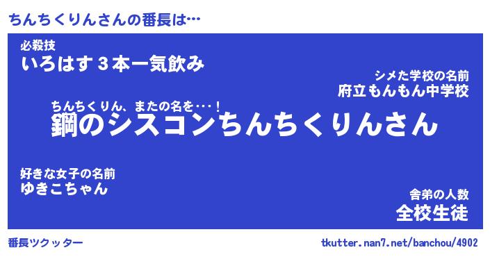 | ヒーロー風カッコイイあだ名 | 『スーパーチンチクリン』『暗黒騎士チン』 |