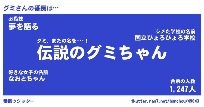 | 伝説のあだ名 | 『伝説のスナイパーグミ』 |