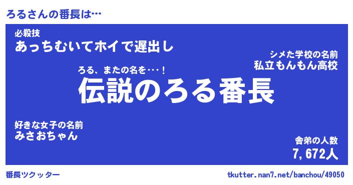 | 伝説のあだ名 | 『伝説のスナイパーろる』 |