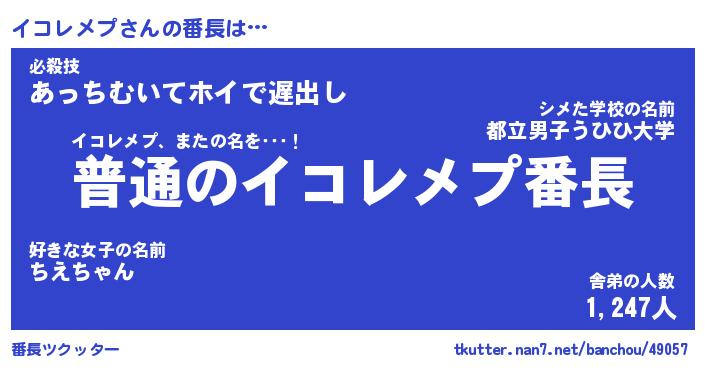 | ヒーロー風カッコイイあだ名 | 『スーパーイコレメプ』『銀牙騎士イコ』 |