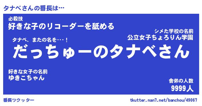 | ポケモン風あだ名 | 『タナチュウ』『タナベダネ』 |