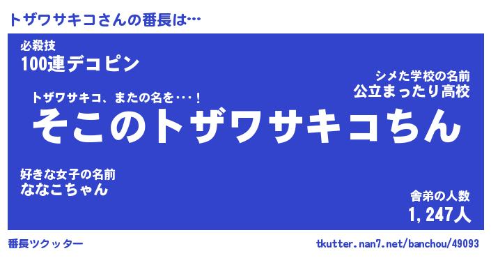 | ヒーロー風カッコイイあだ名 | 『スーパートザワサキコ』『銀牙騎士トザ』 |
