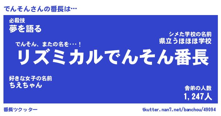 | 男性向けラノベタイトル風あだ名 | 『でんそんの憂鬱』 |