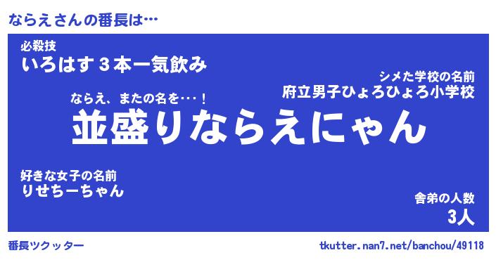 | 意味不明あだ名 | 『ペロリンならえ』『ならえフォーエバー』 |