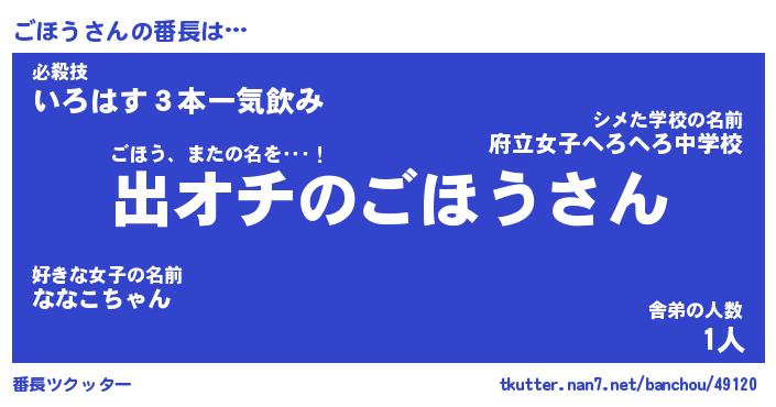| 男性向けラノベタイトル風あだ名 | 『ごほうの憂鬱』 |