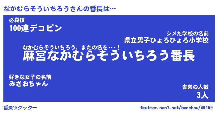 | 肩書あだ名 | 『なかむらそういちろう店長』 |