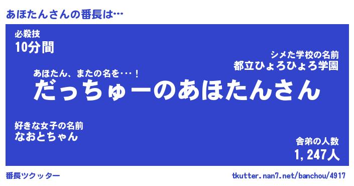 | ヒーロー風カッコイイあだ名 | 『スーパーアホタン』『銀牙騎士アホ』 |