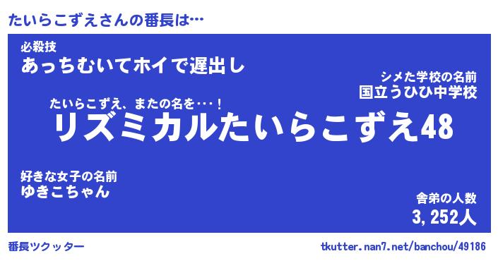 | ヒーロー風カッコイイあだ名 | 『スーパータイラコズエ』『天弓騎士タイ』 |